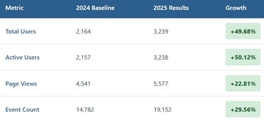 I'm a firm believer that SEO should be measured by business outcomes, not just vanity metrics. Here's what happened over the 12-month period, comparing January-December 2024 with January-December 2025: